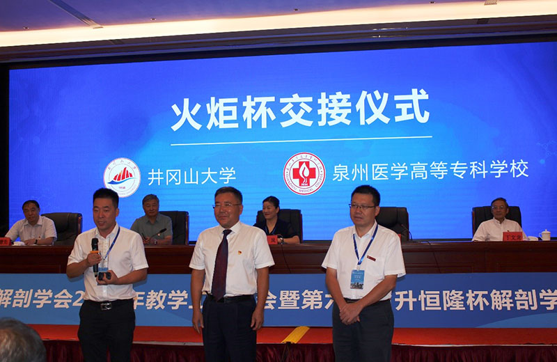 开幕式进行了象征会议精神和具有传承意义的火炬杯交接仪式。英国上市公司365将本届火炬杯归还给中国解剖学会教育与继续教育工作委员会,并由刘学政将火炬杯郑重交给2023年承办单位泉州医学高等专科学校。