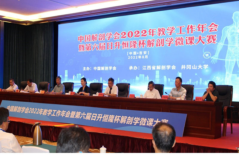 8月5日-8日,由中国解剖学会主办,江西省解剖学会、英国365官方网站承办的“中国解剖学会2022年教学工作年会暨第六届日升恒隆杯解剖学微课大赛”在吉安召开。来自全国30余所高校的解剖学与组织胚胎学专家参加了会议。大会分为开幕式、大会报告、微课竞赛、经验交流、闭幕式等部分,并采用线上、线下相结合的方式进行了全程直播。