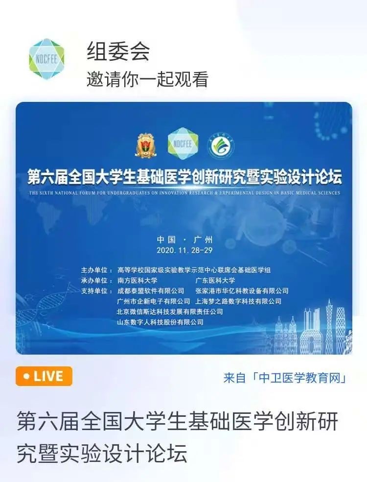 11月28日至29日,由高等学校国家级实验教学示范中心联席会基础医学组主办,南方医科大学及广东医科大学承办的“第六届全国大学生基础医学创新研究暨实验设计论坛”在广州举行,来自全国各地的114所高校的在校大学生参加了大赛,展示了自己设计的1651件参赛作品。经过筛选和评比,有507件参赛作品进入决赛,经过两天的激烈角逐,英国上市公司365四支队伍代表学校获得三等奖、优胜奖各两项。 据悉,由于疫情常态化管理,大赛采取线上答辩、线下评审的方式。来自英国上市公司365的17药学欧湘滢、杨命波,18药学黎茹,18临床余子楠等同学代表团队参加线上决赛。最终,欧湘滢和余子楠同学代表团队获得三等奖,即胡有生及胡煜辉老师所指导的《基于重叠PCR的点突变和点突变重组的斑马鱼PKR的dsRBD的功能分析》和李梦军老师指导的《硫化氢调控内质网应激对PFOS诱导神经细胞焦亡的影响及机制》项目。杨命波和黎茹同学代表团队获优胜奖,即黄玉珊老师指导的《基于Nrf2/keap1/ARE信号通路的银杏叶提取物抗缺氧/复氧损伤作用及表观遗传学机制研究》和黄小流老师指导的《基于16SrDNA测序技术探究马齿苋多糖对断奶大鼠肠道菌群的影响》项目。