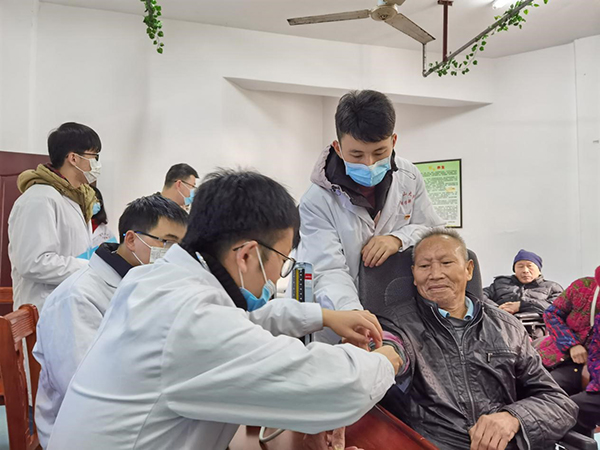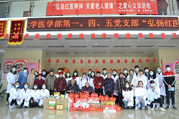 上午9点,到达福利院后,全体成员按计划分成四个大组,在四个区域同时开展义诊活动。学生党员纷纷运用所学,为老人们量血压、推拿按摩,进行健康宣教,还为老人们演唱《映山红》,《毛委员和我们在一起》等歌曲,义诊现场气氛热烈,反响良好。