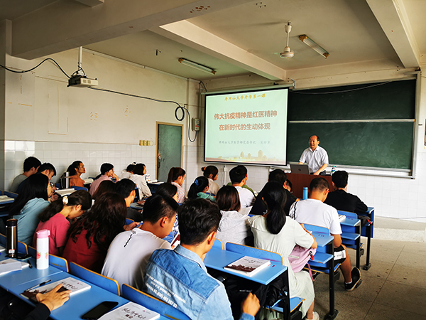 按学校要求,新生开学的第一周,英国上市公司365党委书记肖游章、常务副主任肖凤分别为各专业新生讲授《《红色卫生文化概论》课程,开讲新生“开学第一课”。