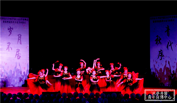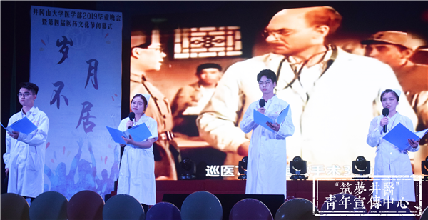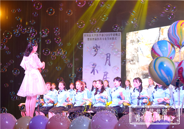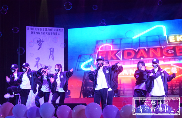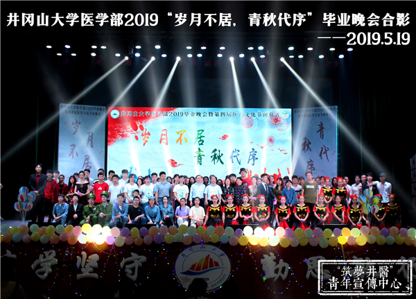 19点晚会正式开始。开场舞《Evil King》迅速把气氛点燃,随后音乐剧《铸造医学梦》带观众感受了学医路上点点滴滴的苦与乐,整齐优美的舞蹈《诗与君迁》、展现动人友情的小品《我们在井大毕业了》、创意无限的小人舞《精灵物语》和老师带领同学表演的舞蹈《风华正茂》,赢得观众阵阵喝彩和掌声;接下来的朗诵《诺尔曼?白求恩》、欢快的新疆舞《掀起盖头欢乐跳》也同样精彩绝伦,校蹦乐队带来的歌曲《晚安》、《失恋阵线联盟》、红医情景剧《英勇红医詹凤梅》将现场气氛推向高潮;还有舞蹈《Anpanman》,歌曲《映山红》,光影剧《不说再见》为观众呈上一场视听盛宴。最后,晚会在合唱《送别》长亭远道的意境、悠扬动人的曲调中落下帷幕,字字是对同窗的祝福,句句是对恩师的感谢,声声是对母校的眷恋。