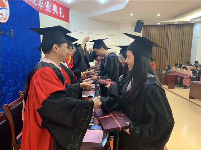 典礼在庄严神圣的国歌中拉开帷幕。副主任张坪兰宣读本届毕业生名单,副书记曾桂群宣了读优秀毕业生名单,随后全体参会领导为符合毕业资格的同学颁发了毕业证、学位证书。毕业生代表孙佳宝深切表达对学部领导、老师的感激之情和对同学的不舍之情,以及坚定即将踏入社会的信心;教师代表傅贵平教授精彩讲话,表达了全体老师对毕业生的关心与殷切期望。