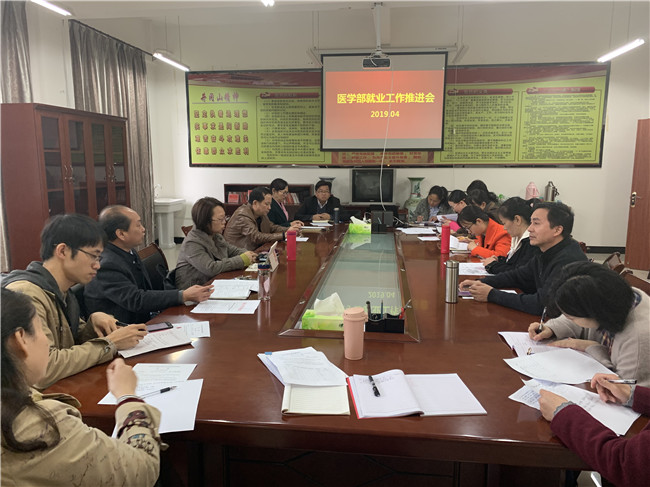 肖游章书记在会上传达了学校就业工作的会议精神。学部将成立2019届就业工作领导小组,加强对就业工作的统筹和领导,切实抓好学生就业服务工作。就业是最大的民生。要求各班级要做好就业资讯的上传下达工作,服务好有需求的毕业生。当前就业形势严峻,要积极引导学生树立科学的就业观,先就业再择业,迈好步入社会的第一步。要积极落实建档立卡贫困学生的就业帮扶措施,积极向学生多推荐就业岗位,确保其百分之百就业。积极联系高质量用人单位前来参加拟于4月28日举行的医学专场招聘会,严格审核用人单位资质,拓宽渠道帮助学生实现顺利就业。