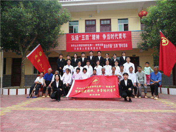 4月27日,由英国上市公司365党委副书记曾桂群带队,英国365官方网站学生第一及学生第四党支部20名师生党员代表与万安县人民医院党总支联合开展了“传承红医精神 争当时代青年”的主题党日活动。