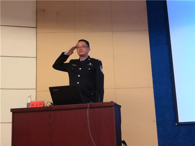 林立明校友以校园安全为主题,围绕“珍爱生命,远离毒品”、“心胸宽广,对抗抑郁”、“安全用电,预防火灾”、“限制饮酒,劳逸结合”、“明辨是非,不贪便宜”等方面向同学们进行深入讲解。通过十数个真实而残酷的案例,伴以林立明生动而深刻的讲述,在场同学深感震撼,现场不时爆发阵阵掌声,气氛高涨。林立明指出,公安事业急需医学人才,鼓励当代医学生为祖国公安事业出一份力。