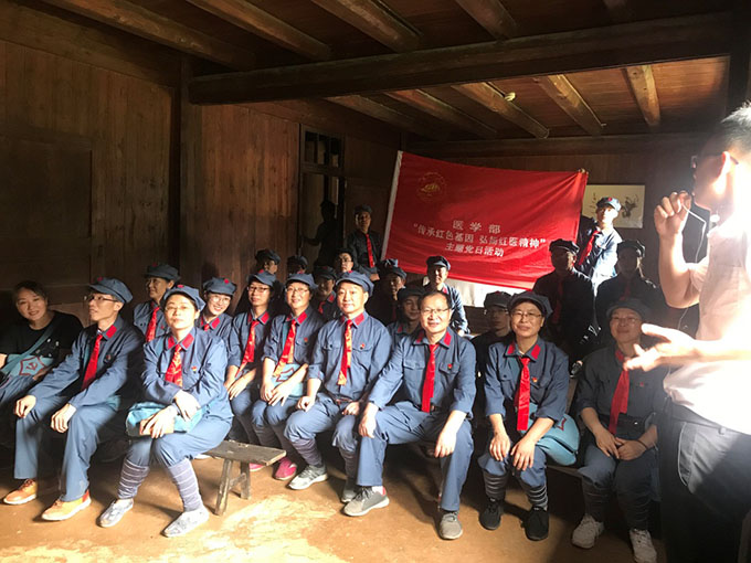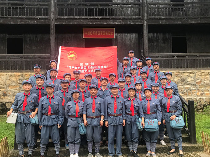 为了组织参与人员学习井冈山斗争时期广大医疗卫生工作者无私奉献、艰苦奋斗的精神,让红色基因代代相传,本次活动采取了现场教学、素质拓展等多种形式。参加人员在黄洋界哨口、大井毛泽东旧居和红军医务所、小井红军医院等地开展了现场教学,并重走了红军挑梁小道。通过本次主题教育党日活动,师生代表深刻领会了井冈山革命斗争的历史和红医精神的内涵与精髓。参与人员还组织开展了制作担架、救助骨折伤员和急救技能比赛等具有医学特色的素质拓展活动,拓展活动进一步加强了大家的集体荣誉感和团队协作意识,增进了交流和互助精神,同时承担全市急救培训的学部老师们也给党员学生代表上了一堂专业的医疗急救现场教学课。参加人员还来到庄严肃穆的北山烈士陵园,重温了入党誓词,向革命烈士敬献了花圈,表达了哀思和“不忘初心,牢记使命”的决心。