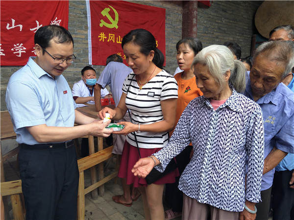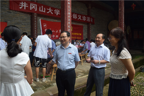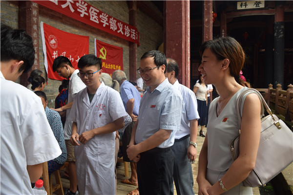 义诊活动中,专家们为群众观察脏器、听诊心肺,对常见病、慢性病进行初步筛查、诊断和一般治疗,并根据群众的身体状况予以耐心详细的解答,提出合理化治疗方案并进行健康指导,同时对义诊居民用药情况给予相应建议,学生代表们负责发放健康宣传材料,免费量血压,按摩推拿、拔火罐,黄俭根副校长更现场免费为群众赠药。义诊活动让古村居民在家门口享受三甲医院的健康服务,受益群众纷纷点赞。