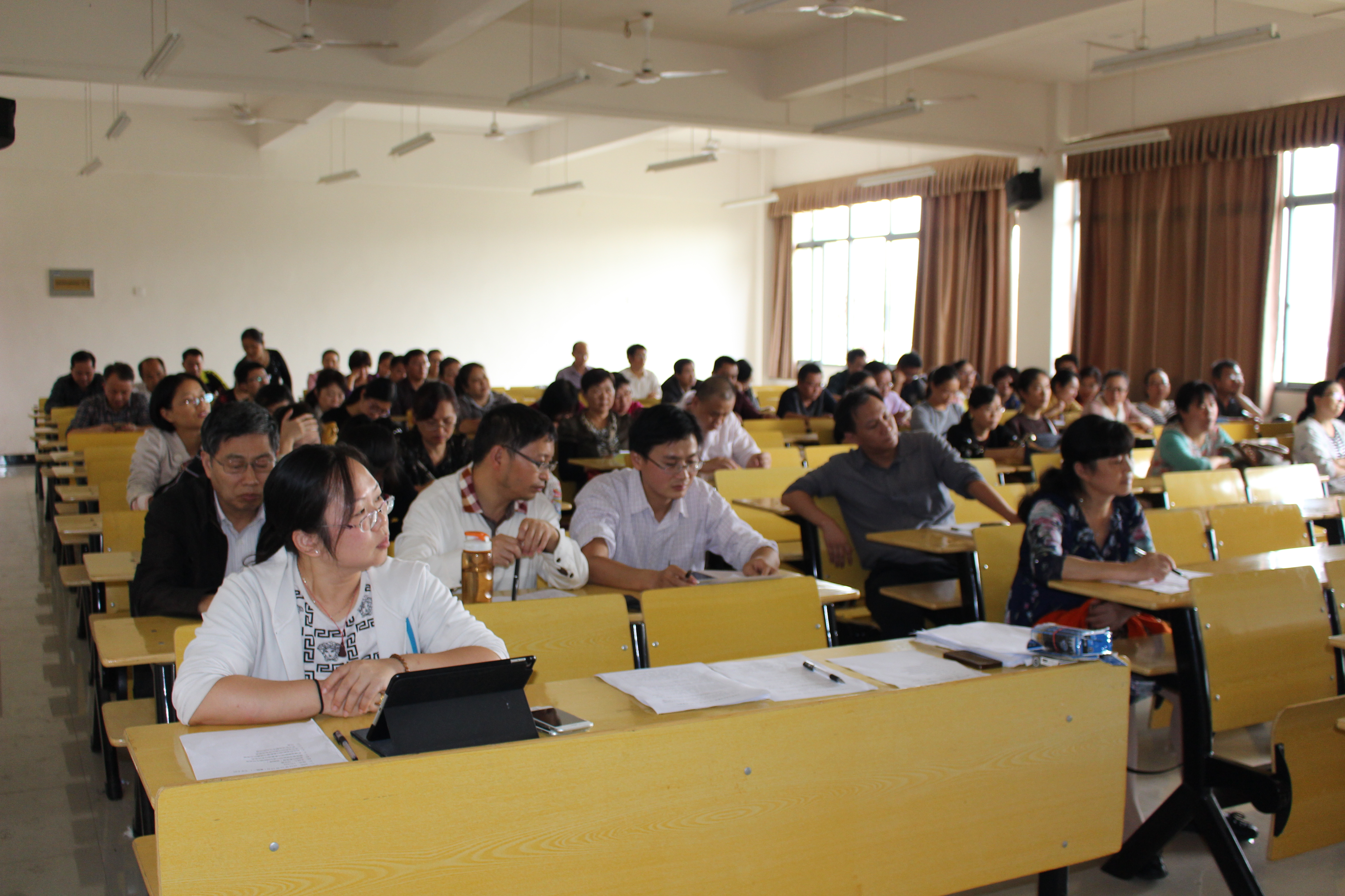 杨震老师结合工作实际与大家分享了他工作中的三个小故事。第一个小故事是关于学生考取事业单位,学生感谢他热心帮忙写证明材料和盖章的事情;第二个小故事是他批评一位临床教师坐着上课的事情,这位教师因抢救病人到凌晨四点,上午坚持上课但因体力不支而坐着上课。第三个小故事是关于他本人因医学认证工作忙累而有些“怨气”的事情。他说,第一个故事体会到什么是以学生为中心。第二个故事警醒他,作为一名教学管理者,应该抛弃固有的思维偏见,深入实际做到以教师为中心。第三个故事让他汗颜,认识到应该努力做好属于自己岗位职责的每一项工作。