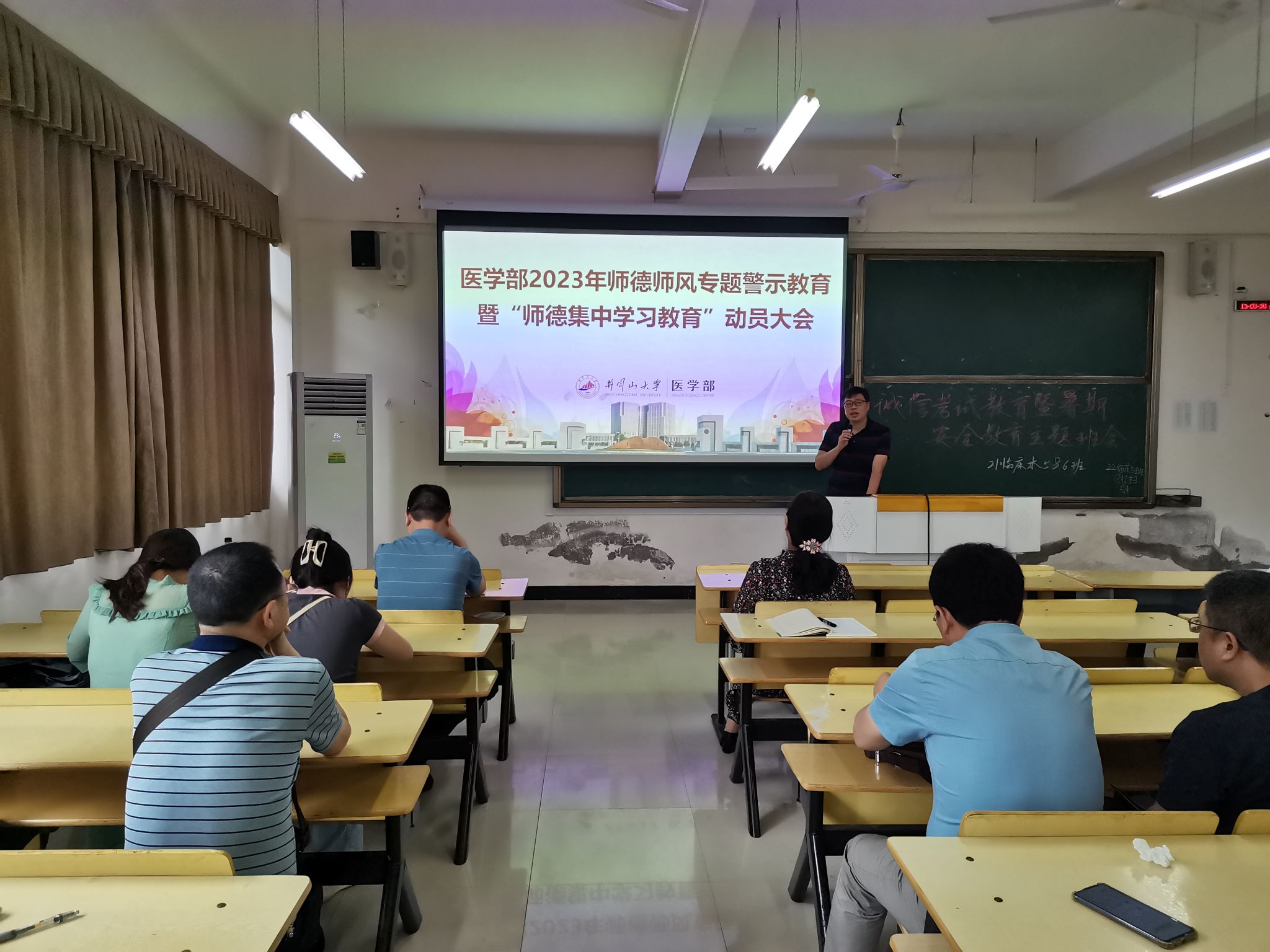 “国无德不兴,人无德不立,师无德不教,良好的师德是教师的立身之本”,广大教职工要以此次师德师风专题学习为契机,以德立身、以德立学、以德施教、以德育德,积极营造风清气正的医学教育教学育人环境。