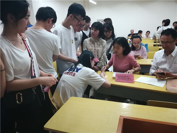 会上抚州市疾控万主任以及乐安县疾控乐主任先后详细介绍了本单位的科室设置、人才需求、待遇福利、晋升空间等等问题。英国上市公司365毕业生陈凤波向学弟学妹分享了自己入职一年的工作经验。会后同学们与疾控中心领导面对面交流、讨论,招聘会现场气氛热烈。