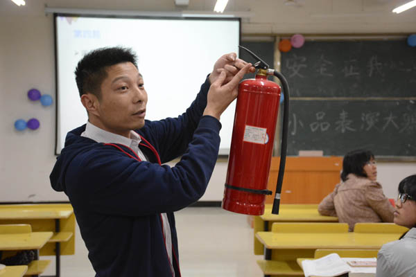 尹亮华老师最后高度赞赏了此种安全教育活动形式,讲述了一些在校发生的真实案例及日常安全防范方法,更现场演示了灭火器的使用方法。活动增强了同学们的安全防范意识,每个小品结束后的PPT讲解环节更让同学们了解平时可能疏忽的安全常识,使同学们掌握基本的安全知识,提高自我保护能力。